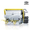 Creasing and Die Cutting Machine is a special equipment for creasing and die cutting cardboard, corrugated board, plastic board and leather, and is widely used in printing, packaging and plastic industries. It is characterized by compact structure, fine workmanship, high pressure, high precision and easy and reliable operation. 1) High strength due to whole body casting with high quality material. 2) Smooth running, high pressure and low noise with 4-step helical gear mechanism. 3) Single plate electromagnetic clutch is sensitive and reliable. 4) Operational altitude is reasonably arranged, moving-bed opens to its maximum. 5) Electrical system is designed in conformity with IEC standard. 6) Single, continuous operation and opening delay are available, delay range adjustable. 7) Reliable safety system. 8) Adjustable chases. Specifications: Model ML-2000 ML-1800 ML-1600 Inside chase (mm) 2000×1400 1800×1300 1600×1250 Max. die cutting size (mm) 2000×1400 1800×1300 1600×1250 Speed (cuts/min) 16±2 16±2 16±2 Max. rule length (m) ≤58 ≤50 ≤43 Power main motor (kw) 15kw 11kw 11kw Gross weight (kg) 16500 14200 12000 Dimensions (L×W×H)(mm) 3500×2200×2180 2900×2300×2180 2700×2300×2180